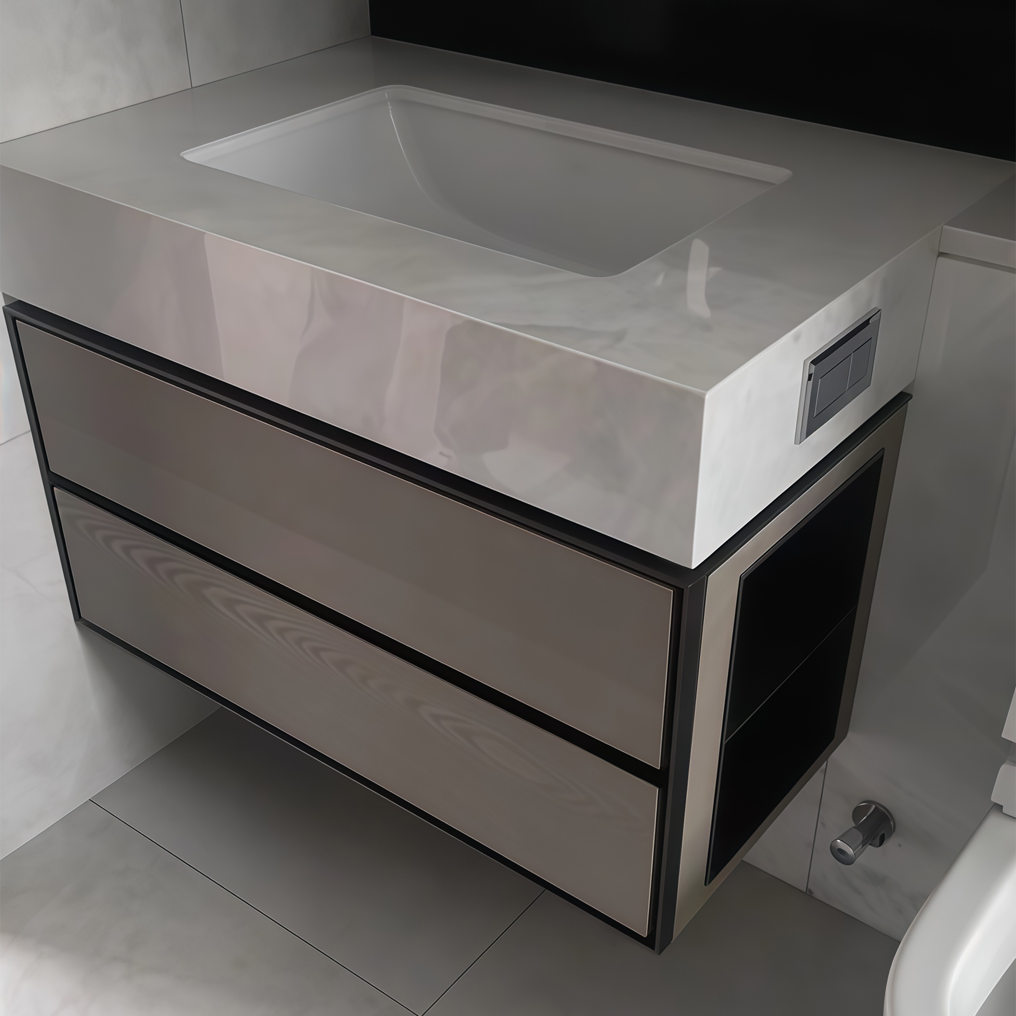 Stone table top, wall-mounted design, multi-dimensional space optimization, to meet the needs of classified storage.